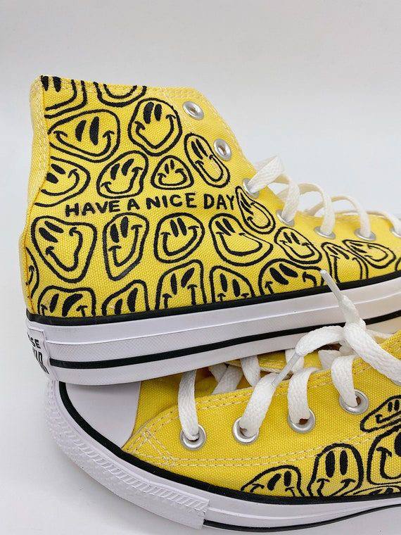کتونی کاستوم طرح لبخند آل استار زنانه مردانه سایز بندی کامل از سایز 37تا۴۴ طراحی کامل با دست رنگ وارداتی بدون ریزش رنگ کتونی با زیره پی یو و جنس پارچه و بدون بو گرفتی